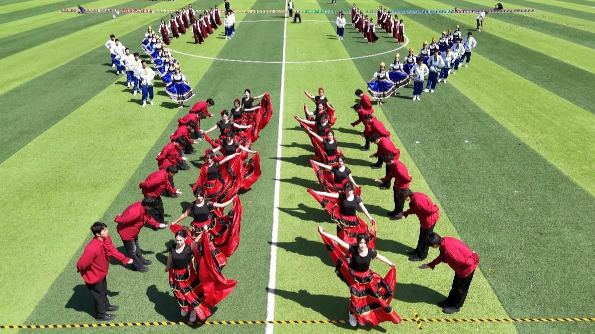 同学们奔向绿茵之上,《阳光跃动 筑梦青春》《热烈》《我的未来式》《奔跑的青春》等团体表演依次亮相,带来了一场震撼与感动交织的青春跃动。